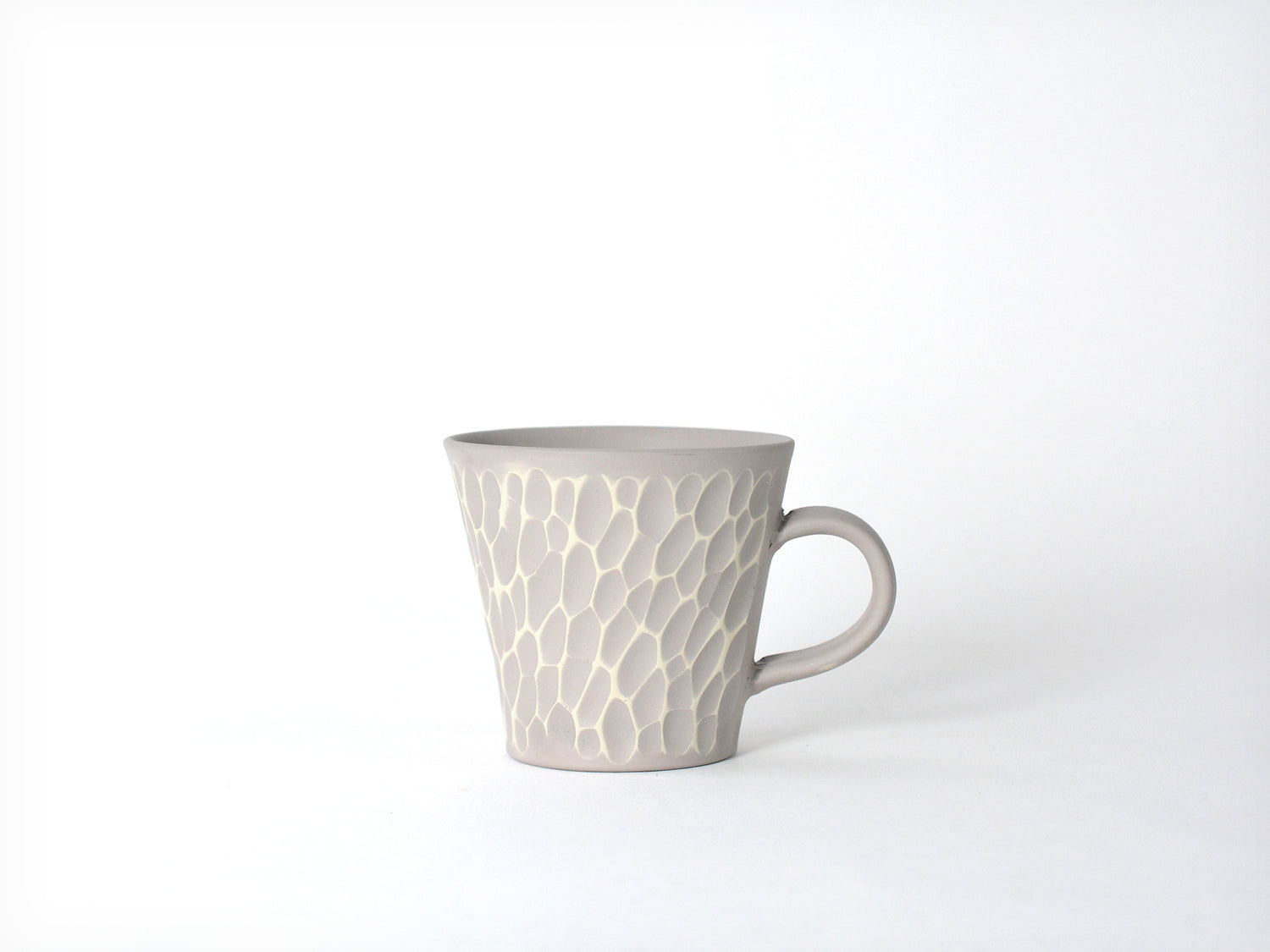 群馬県桐生市で作陶するフルカワゲンゴさん。 寡黙という言葉がとても似合う氏の姿勢はその誠実な作品にも確実に現れています。 独自の複雑な模様の陶器は当然手作業で作られており、それを原型としマスター型を作り上げそこから手作業で一つ一つ作り上げられます。 鉄分の多い土を炭化焼成した深みのある黒や銀彩を用いたもの、不思議な模様が彫り込まれたものなど、モノトーンの色合いが特徴です。 静かだが確かな信念を持って作陶する氏の姿勢が陶器に投影されています。