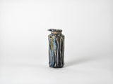 ブラックや渋めのグリーンなど幾重にも折り重なる複雑な色合いに、ランダムに施されたドット模様がユニークな醤油差しです。