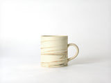 こちらのグレーカラーも一度焼成されたものを再度燻すことで作り出されていますが、このマグカップは元々線の部分の白色の土で作られています。