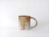 独自にブレンドされた土と釉薬で作られたマグカップは、大地の荒々しさと自然の素朴さを練り混ぜたような深みのある色合いが魅力です。