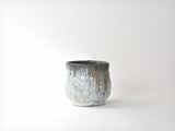 独自にブレンドされた土と釉薬で作られた湯呑みは、大地の荒々しさと自然の素朴さを練り混ぜたような深みのある色合いが魅力です。