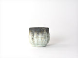 独自にブレンドされた土と釉薬で作られた湯呑みは、大地の荒々しさと自然の素朴さを練り混ぜたような深みのある色合いが魅力です。